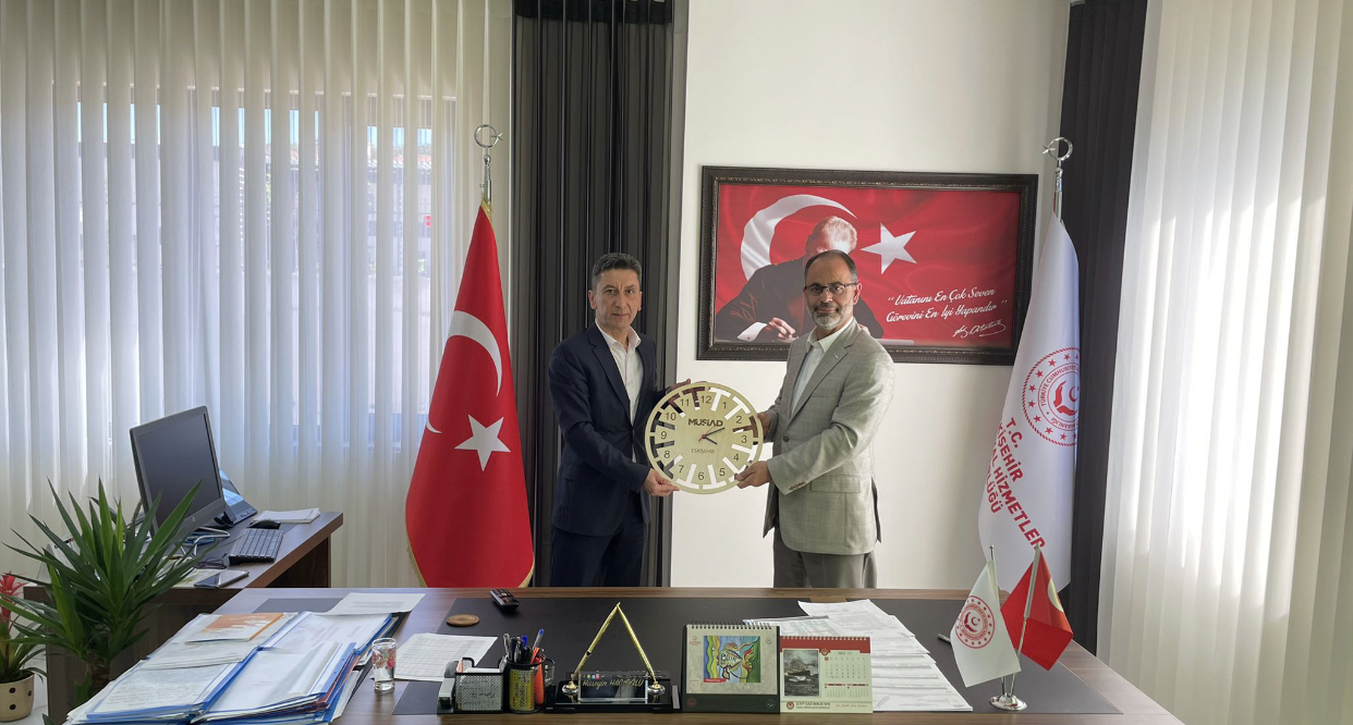 Müstakil Sanayici ve İşadamları Derneği (MÜSİAD) Eskişehir Şubesi Başkanı Hakan Duman, Eskişehir Osmangazi Üniversitesi (OGÜ) bir önceki dönem Rektörü onur üyemiz Prof. Dr. Hasan Gönen, Başkan Yardımcıları Gökhan Çalışkan veİsmail Kanber, Yönetim Kurulu üyelerimizden Kenan Ertorunve Serkan Ülkü üyelerimizden Ali Rıza Durmaz ile birlikte Aileve Sosyal Hizmetler İl Müdürü Hüseyin Hacıoğlu’ nu Yeni Hizmet Binasındaki makamında ziyaret ederek hayırlı olsun dileklerinde bulunarak görevinde başarılar dilediler.
