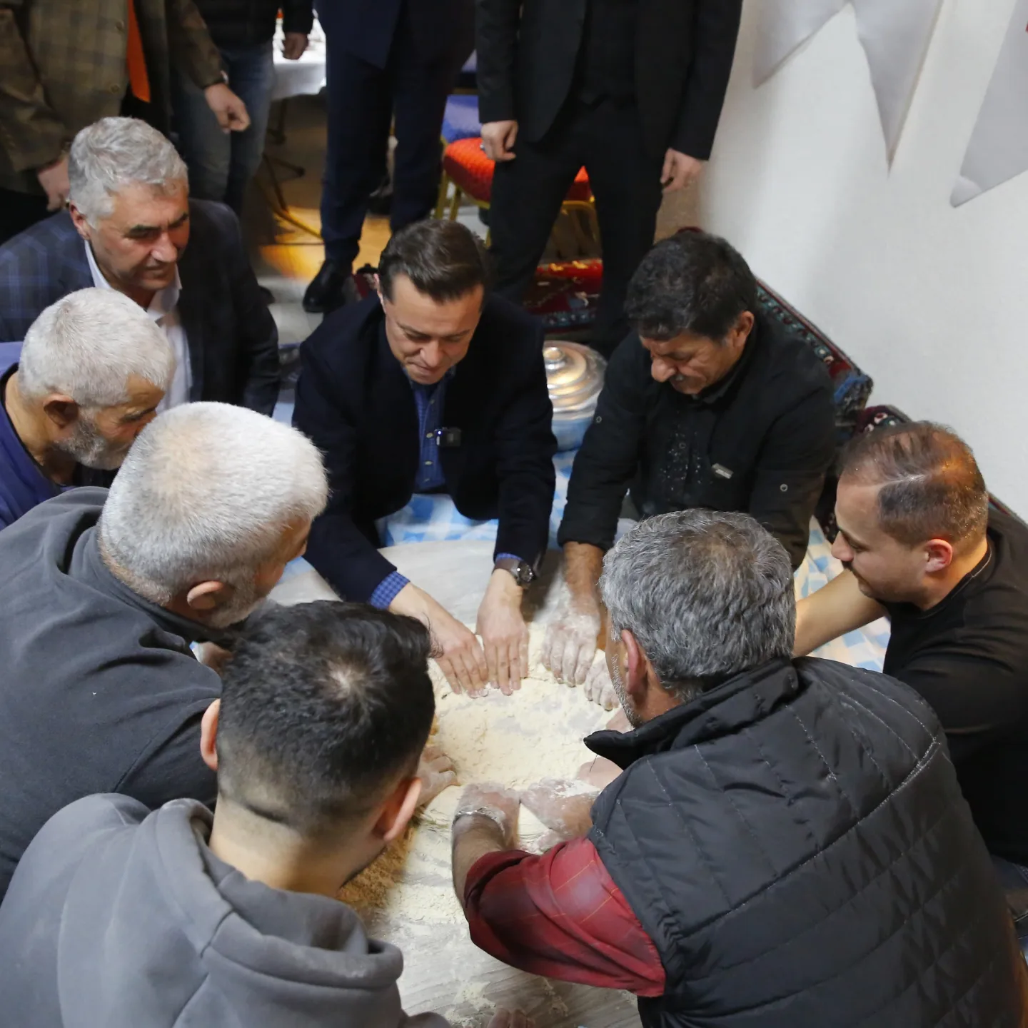 AK Parti Eskişehir Büyükşehir Belediye Başkan Adayı Nebi Hatipoğlu, Dadaşlar Eğitim Kültür ve Yardımlaşma Derneği’nin düzenlediği ‘Herfene Gecesi’ne katılarak tel helvası yaptı.