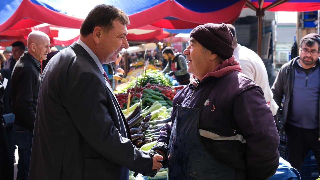 Özkan Alp pazar esnafı ile buluştuktan sonra Nilüfer Caddesi esnaflarını da ziyaret etti. Özkan Alp’e ziyaretleri sırasında Belediye Meclis Üyesi Adayları Mehmet Kepez ve Barış Toprak da eşlik etti.