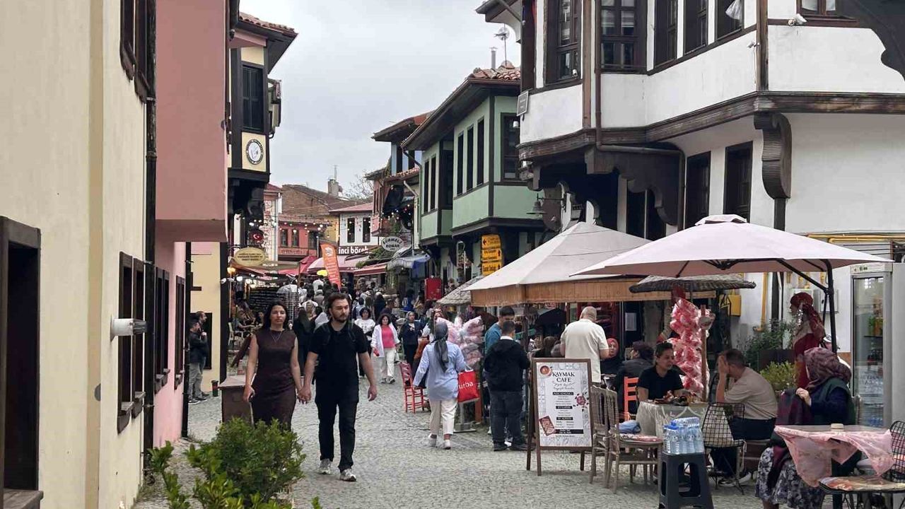 Eskişehir’in Tarihi Odunpazarı bölgesinde, serinleyen havaya rağmen hafta sonunu fırsat bilen yerli ve yabancı turistlerin ilgisiyle birlikte yoğunluk yaşanıyor.
