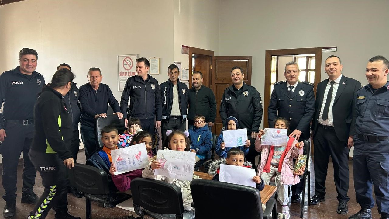 Polis memurlarına yaptıkları resimleri takdim eden öğrenciler, daha sonra karakol içerisinde bulunan birimleri gezerek bilgi aldı. Ziyarete katılan İlçe Milli Eğitim Müdürü Serhat Özkaya "180' inci kuruluş yılında her zamankinden daha güçlü ve dünyada da önemli bir konuma sahip olan emniyet teşkilatımızın kuruluşunu ve bütün emniyet çalışanlarımızın haftasını kutluyoruz" dedi.