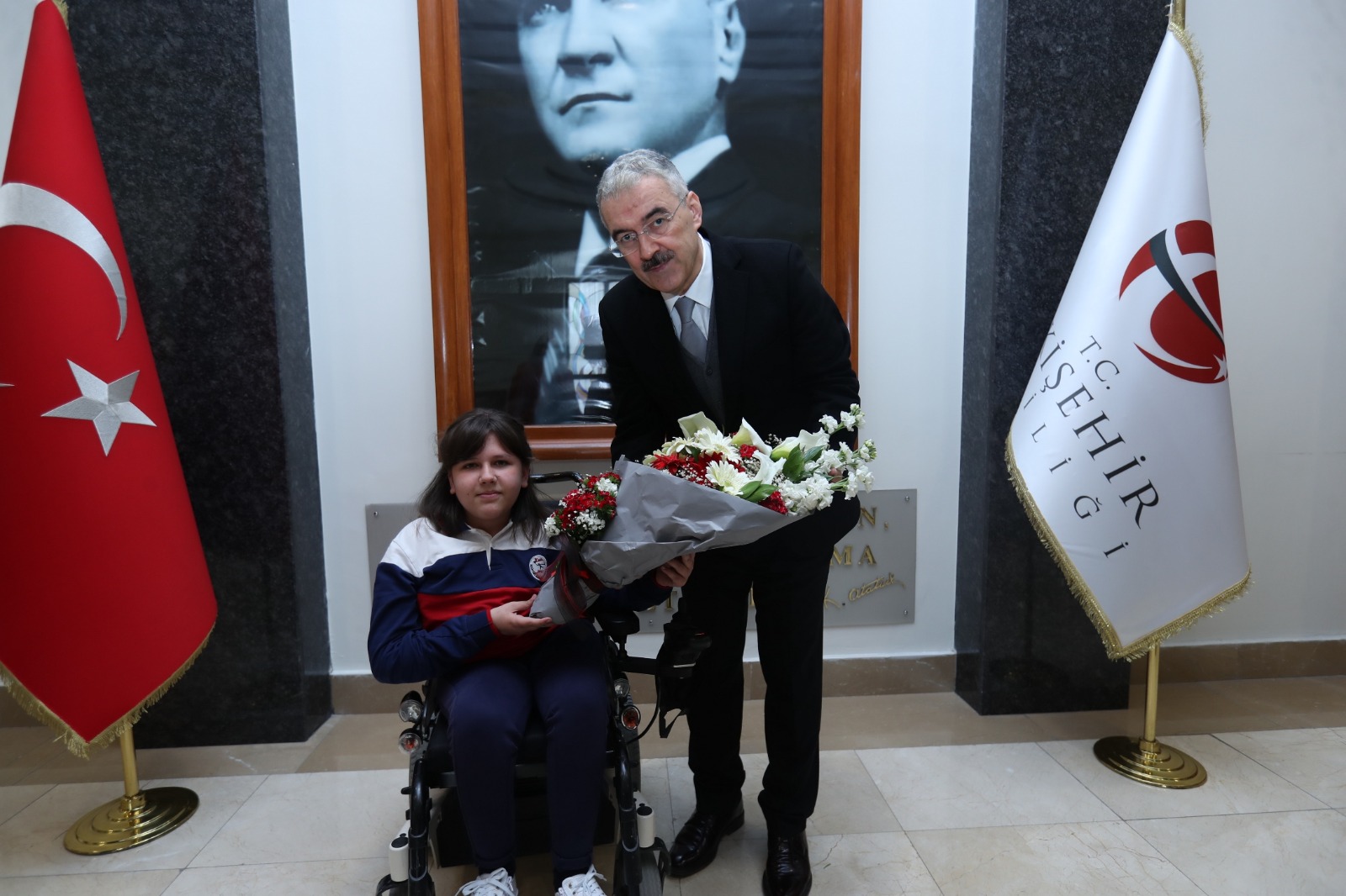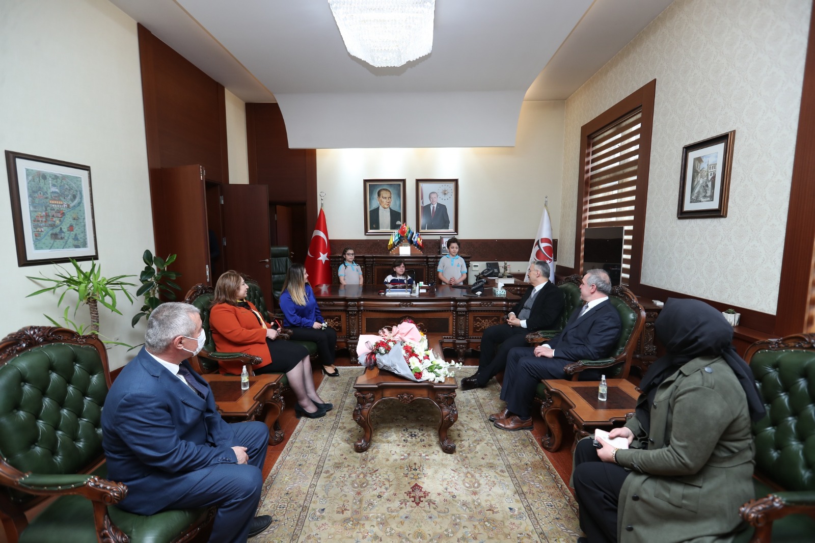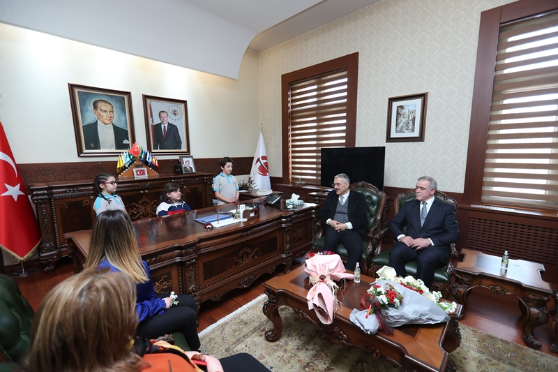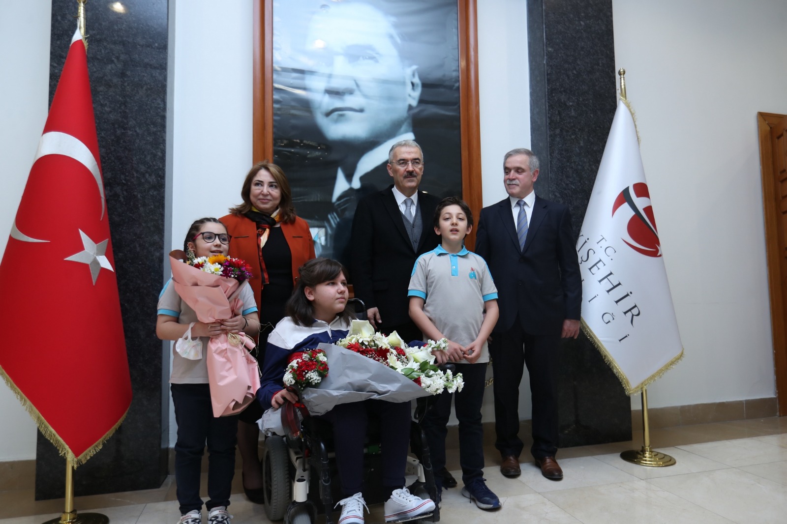 23 Nisan Ulusal Egemenlik ve Çocuk Bayramı münasebetiyle Necip Fazıl Kısakürek Ortaokulu öğrencileri Buğlem Yağdıran, Hilal Sena Özdemir ve Doruk Utku Şen Vali Erol Ayyıldız’ı makamında ziyaret ederek sırasıyla Valilik makam koltuğuna oturdu.