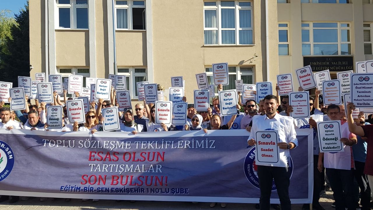 Eğitim-Bir-Sen Sendikası Eskişehir İl Temsilcisi İbrahim Akar Öğretmenlerimizin tek derdi unvan sahibi olmak değil, ekonomik olarak rahatça geçinebilecekleri ücret sahibi olmaktır. Kanun bu haliyle uygulanması okullardaki çalışma barışını bozacak bu durum da eğitim öğretime olumsuz bir şekilde yansıyacaktır dedi