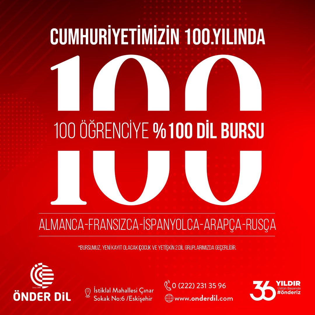 1987 Yılından bugüne şehrimizde Yabancı dil üzerine Faaliyet gösteren Önder Dil Eğitim Kurumları, Statüyü tasiyab5 öğrencilere Cumhuriyet'in 100. yılında yüzde 100 burs vereceğini duyurdu.