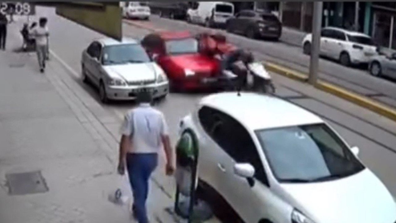 Kaza, Tepebaşı ilçesi Gaffar Okkan Caddesi'nde meydana geldi. Güvenlik kameralarına anbean yansıyan olayda, caddede ilerleyen motosikletli kuryeye aynı yönde seyreden 26 AAD 525 plakalı hatchback otomobil arkadan çarptı. Çarpmanın etkisiyle kurye Y.A. aracın ön camına adeta yapıştı. Otomobil sürücüsü ise kısa bir süre durduktan sonra olay yerinden kaçtı.