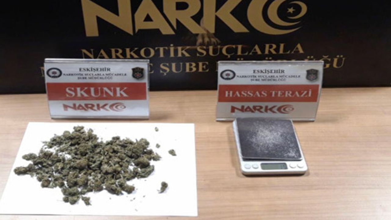 Edinilen bilgilere göre, Eskişehir İl Emniyet Müdürlüğü Narkotik Suçlarla Mücadele Şube Müdürlüğü (NARKOTİM) tarafından uyuşturucu satıcılarına yönelik operasyon düzenlendi. Eskibağlar Mahallesi'nde yapılan çalışmalar neticesinde ekipler, 2 şüpheli sahsı yakalayarak gözaltına aldı. Yapılan aramalarda 29,25 gram skunk maddesi ve 1 adet hassas terazi ele geçirildi.