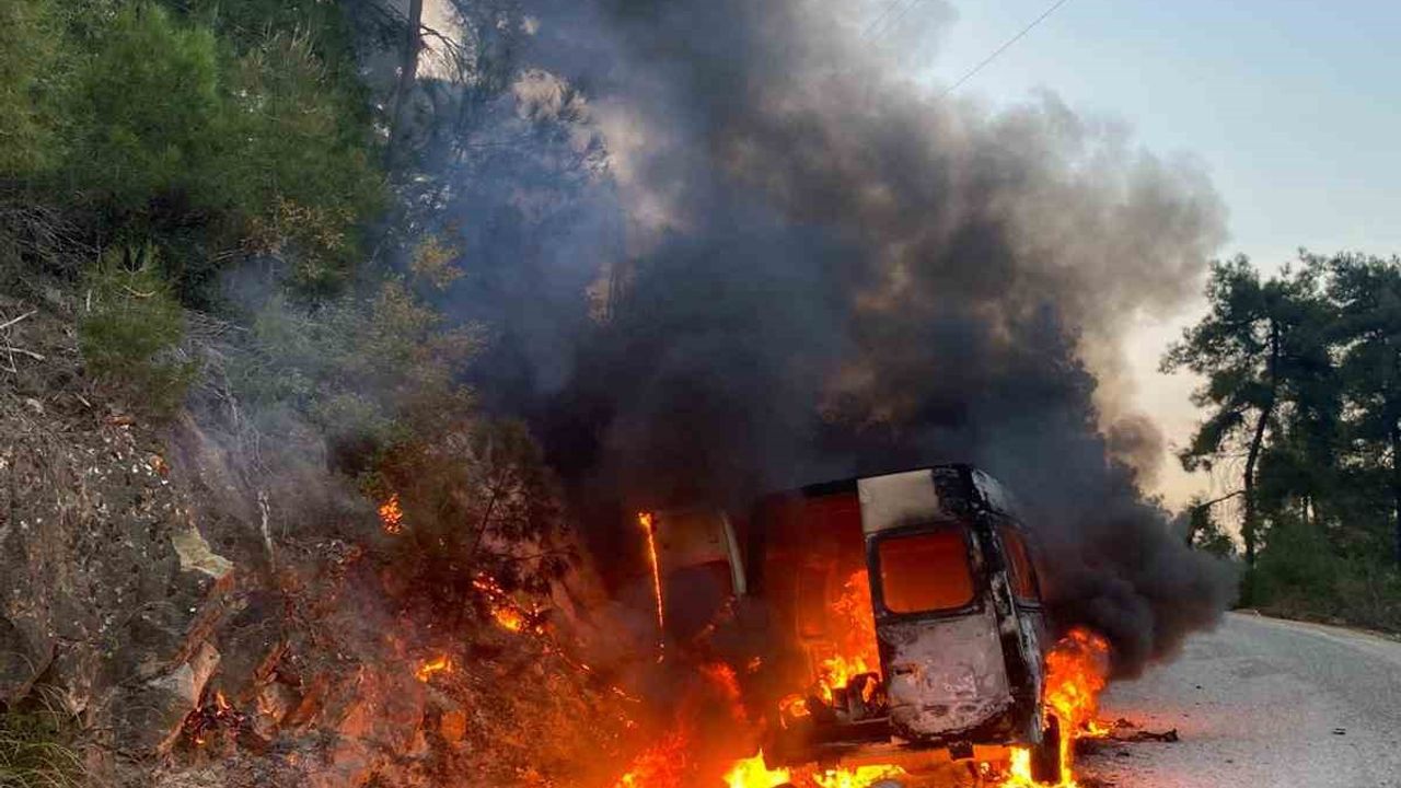 Bilecik’in Osmaneli ilçesinde minibüs, seyir halindeyken motor kısmında çıkan yangında demir yığını haline dönüştü. Alevler, Orman İşletme Şefliği Orman ekiplerinin anında müdahalesiyle ormanlık alana sıçramadan söndürüldü.