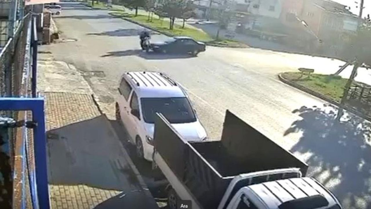 Kütahya'da otomobil ile motosikletin çarpışması sonucu meydana gelen trafik kazasında bir kişi yaralandı. Kaza anı, çevredeki bir iş yerinin güvenlik kamerası tarafından saniye saniye kaydedildi.