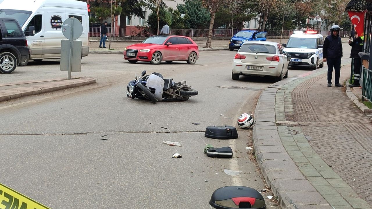 Olay, bugün Büyükdere Mahallesi'nde Kaplanlı ve Ali Çetinkaya caddelerinin kesiştiği kavşakta meydana geldi. Edinilen bilgilere göre, Özgür G. (42) idaresindeki 26 EB 051 plakalı motosiklet ile Arda Can K. (22) yönetimindeki 03 ABK 939 plakalı otomobil çarpıştı. Kazanın etkisiyle savrulan motosiklet sürücüsü Özgür G. yaralandı.