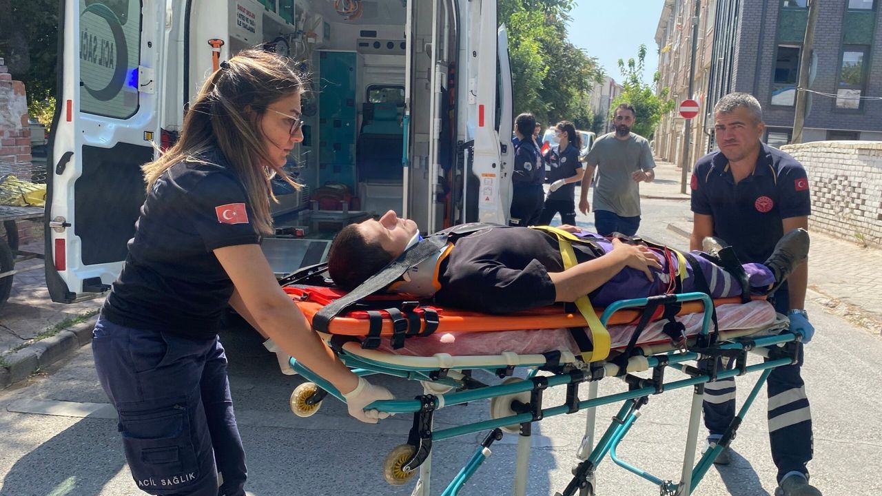 Yaralı kurye ambulansla hastaneye kaldırıldı
