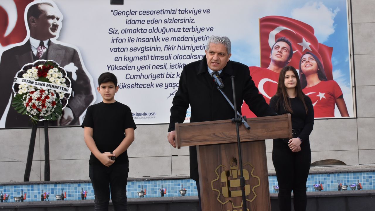Eskişehir Organize Sanayi Bölgesi (EOSB) Yönetim Kurulu Başkanı Nadir Küpeli, Gazi Mustafa Kemal Atatürk'ün ebediyete intikalinin 83. yılı dolayısıyla Özel EOSB Mesleki ve Teknik Anadolu Lisesinde düzenlenen anma törenine katıldı.