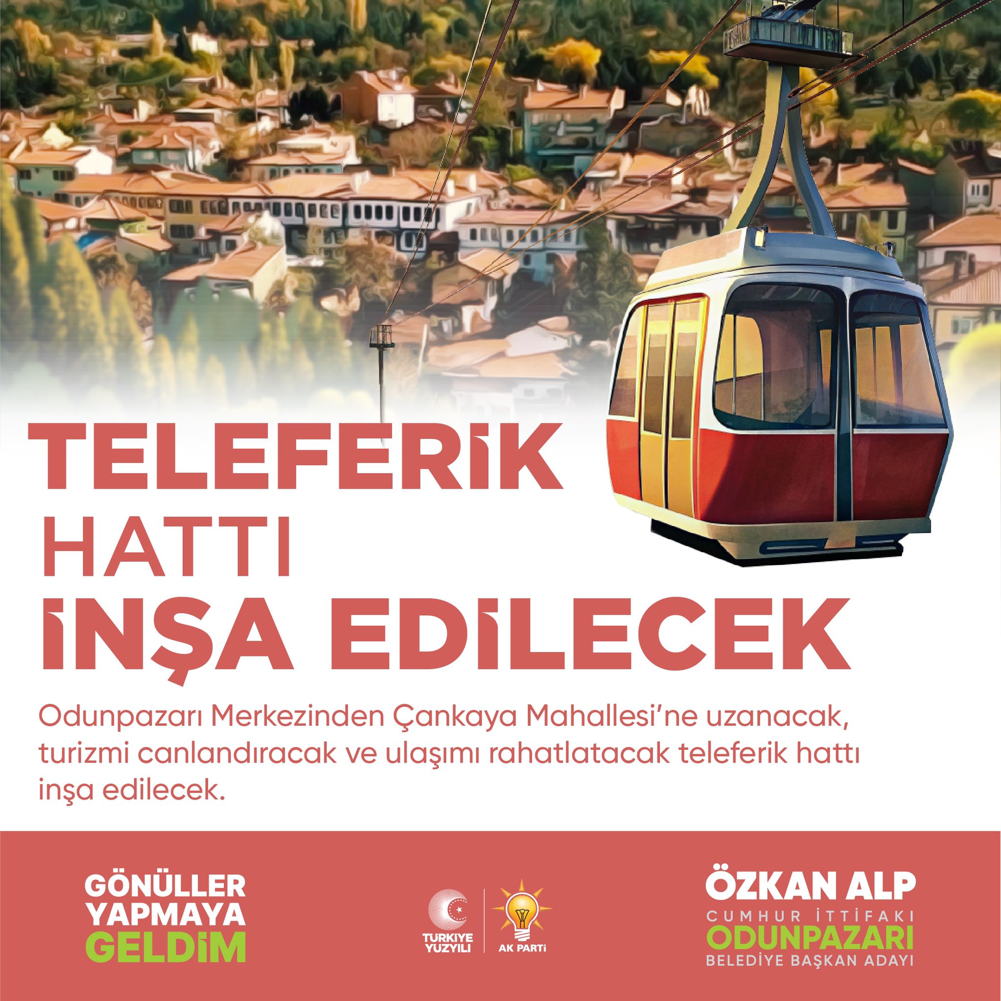 Alp, yeni toplu konut projeleri, teleferik hattı ve bisiklet yolu gibi altyapı projelerini de duyurdu. Odunpazarı'nı turizme açacak olan teleferik hattının yanı sıra şehrin spor ve sağlık altyapısını güçlendirecek olan bisiklet yolunun hayata geçirileceğini belirtti.