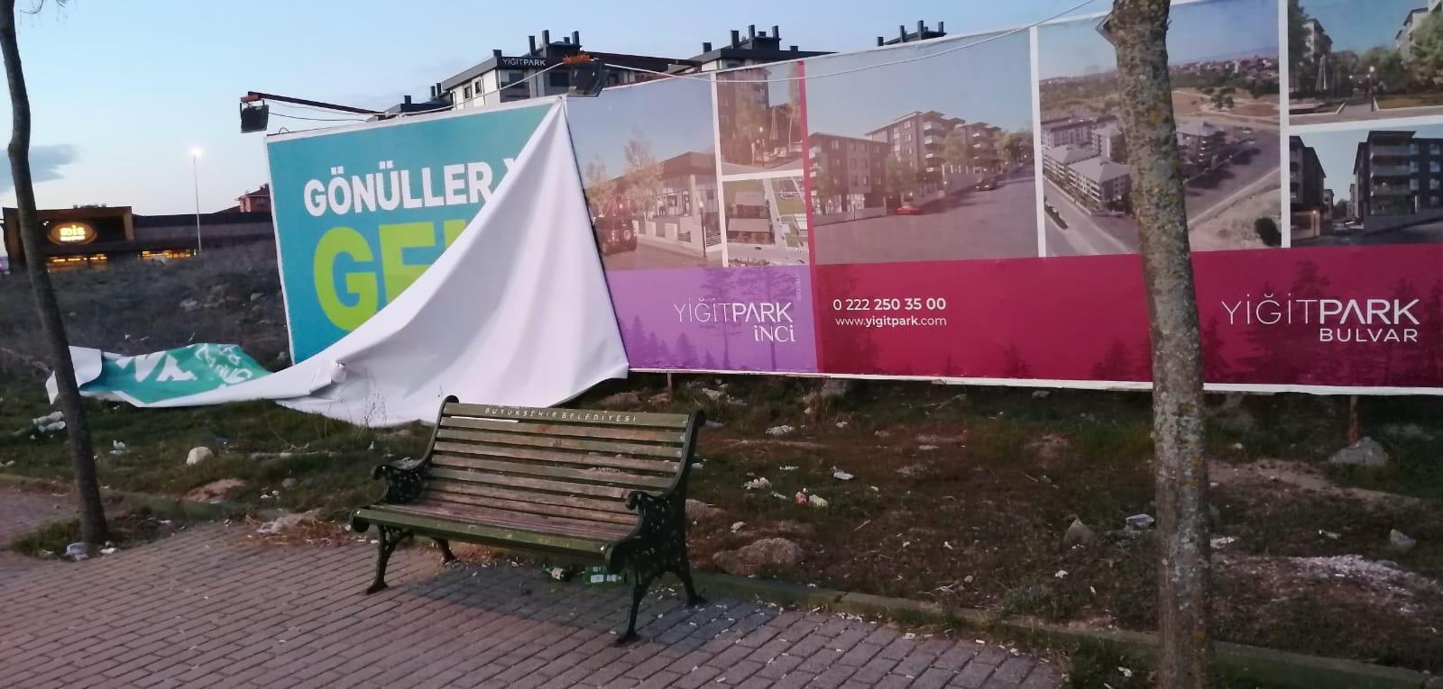 Ümit Sezer; Koskoca caddede park edecek başka bir yer yokmuş gibi bizim Belediye Başkan Adayımızın görselinin olduğu bilboardın önüne, görseli kapatacak şekilde bırakılmış Kazım Kurt’un seçim otobüsü var.