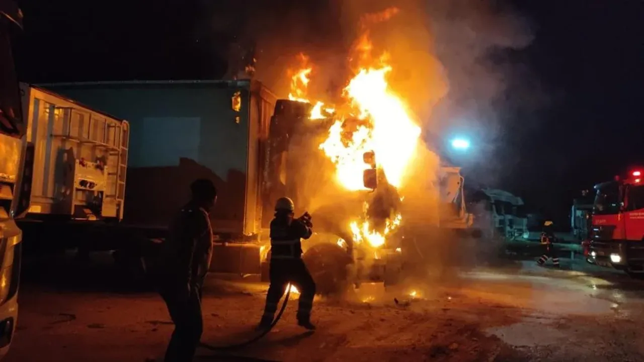 Bozüyük'te ilçesinde park halindeki tır alev alev yandı.