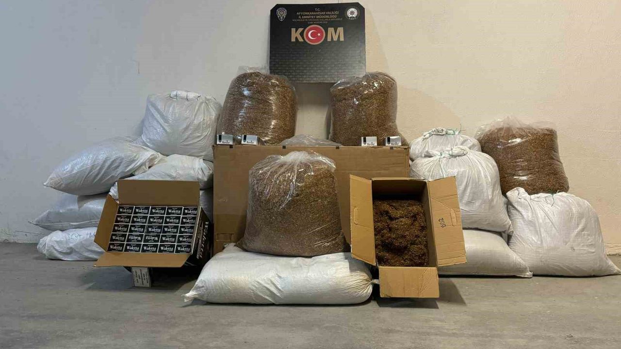 Afyonkarahisar’da polis tarafından bir depo ve araçta yapılan aramada 10 bin adet boş makaron ile 351 kilogram kaçak tütün ele geçirildi.