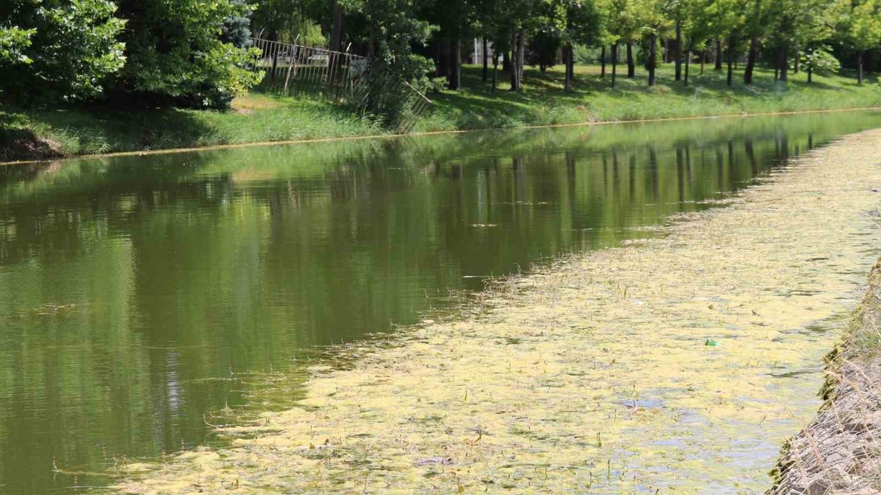 Eskişehir’de Porsuk Çayı’nın bazı bölümlerinde su akış hızının azalmasından dolayı suyun yüzeyinde yosun tabakası oluştuğu görüldü.