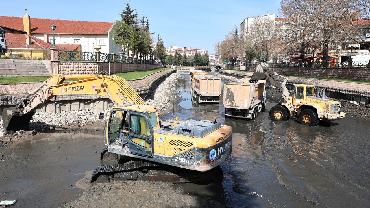 Eskişehir Büyükşehir Belediyesi Su ve Kanalizasyon İdaresi (ESKİ) ekipleri Eskişehir'in simgesi ve yaşam kaynağı olan Porsuk Çayında kapsamlı dip temizlik çalışmalarına devam ediyor. Çalışmaları yerinde inceleyen Büyükşehir Belediye Başkanı Ayşe Ünlüce, "Şehrimize can veren, değer katan, renk katan Porsuk Çayımız bizim gözbebeğimiz. Porsuk Çayımızın ömrünü uzatmak, onu geleceğe taşımakta bizim en önemli görevlerimizden bir tanesi. Bu yüzden dip temizliği çalışmalarımız tüm hızıyla sürüyor." dedi.