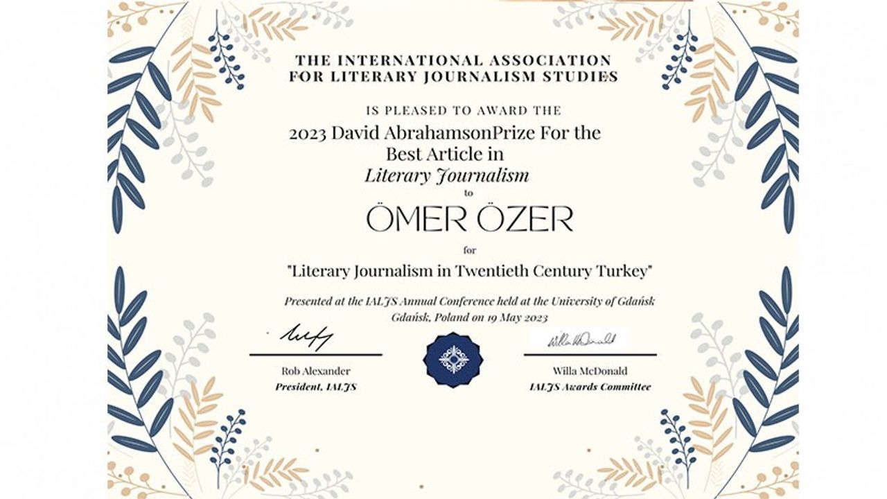 Türkçe adı Uluslararası Edebi Gazetecilik Araştırmaları Derneği olan The International Association for Literary Journalism Studies’in bu yılki David Abrahamson en iyi makale ödülü, Anadolu Üniversitesi İletişim Bilimleri Fakültesi Gazetecilik Bölümü Öğretim Üyesi Prof. Dr. Ömer Özer’e verildi.