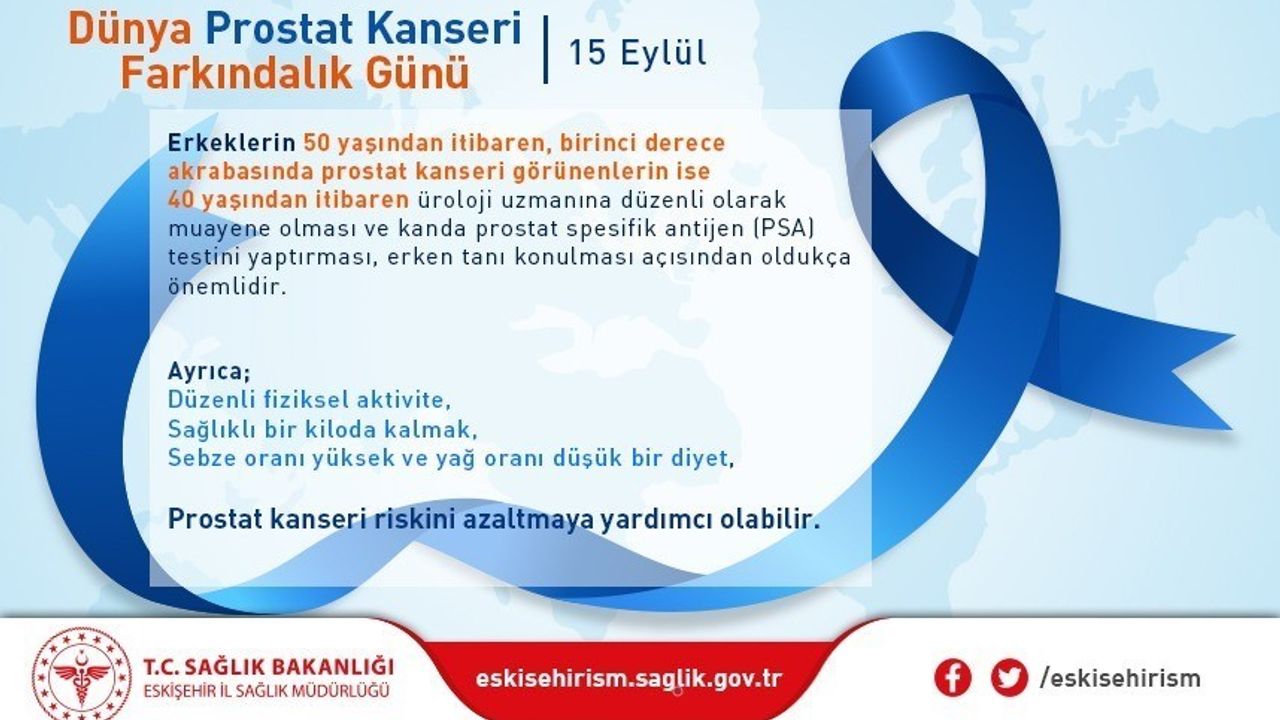 Prostat kanseri riskini azaltmak için, sağlıklı beslenme ve fiziksel aktivitenin önemli olduğunu dile getiren Eskişehir İl Sağlık Müdürü, "50’li yaşlardan itibaren rutin kontroller için üroloji hekimine başvurulmalı, ayrıca yukarıda sayılan şikâyetlerden en az birisinin mevcut olması halinde mutlaka hekime başvurulması gereklidir. Halkımıza bütün kanserlerde olduğu gibi prostat kanserinde de erken teşhisin hayat kurtaracağını hatırlatırım" ifadelerini kullandı.