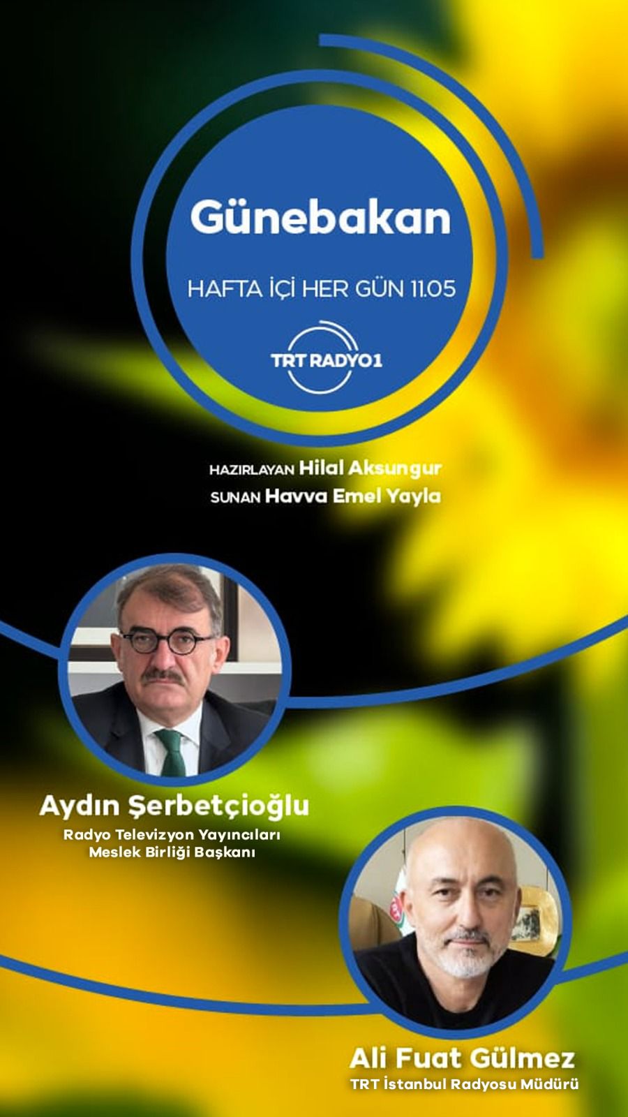 6 Mayıs Cuma günü saat 11:05’te TRT Radyo1’de yayınlanacak olan Günebakan programına RATEM Yönetim Kurulu Başkanı M. Aydın Şerbetçioğlu ve İstanbul Radyo Müdürü Ali Fuat Gülmez konuk oluyor. Hilal Aksungur’un hazırladığı ve Havva Emel Yayla’nın sunduğu programı bit.ly/trtradyoprogramlari linkten dinleyebilirsiniz.