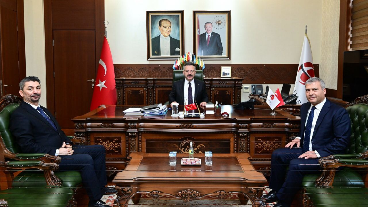 Eskişehir Valisi Hüseyin Aksoy, Anadolu Üniversitesi Rektörlüğüne atanan Prof. Dr. Yusuf Adıgüzel ve Rektör Yardımcısı Prof. Dr. Yusuf Özkay'ı makamında kabul etti. Vali Aksoy, Rektör Adıgüzel'e yeni görevinin hayırlı olması temennisinde bulunarak başarılar diledi.