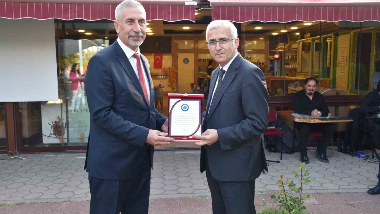 Eskişehir Osman Gazi Üniversitesi (ESOGÜ) Rektörü Prof. Dr. Kamil Çolak, emekliye ayrılan ESOGÜ İdari ve Mali İşler Daire Başkanı Necmettin Başkut’a yaptığı hizmetlerden dolayı plaket takdim etti.