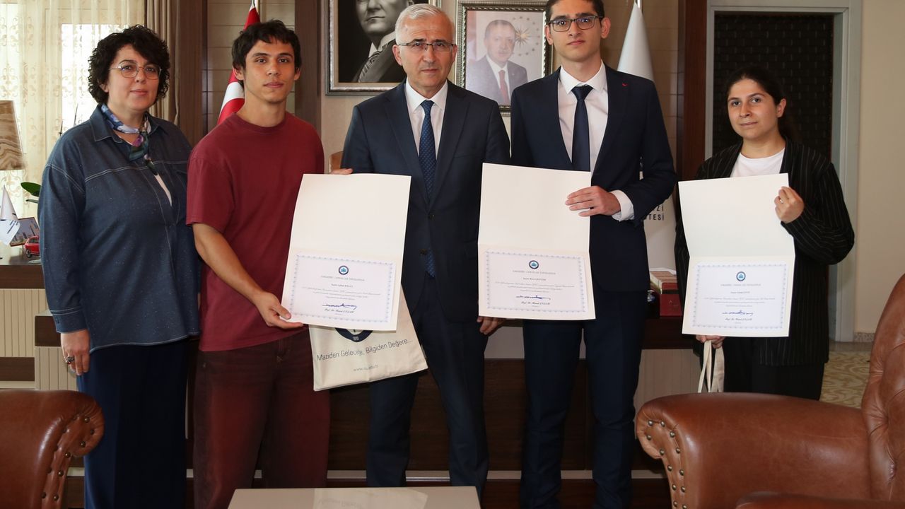 Prof. Dr. Kamil Çolak sözel puan türünde Türkiye 1656.’sı olarak ESOGÜ Sanat ve Tasarım Fakültesi Görsel İletişim Tasarımı Bölümü’ne yerleşen Aykut Balcı, dil puan türünde Türkiye 3580.’si olarak ESOGÜ Eğitim Fakültesi İngilizce Öğretmenliği bölümüne yerleşen Gönül Eyüp ve sayısal puan türünde Türkiye 3925.’si olarak ESOGÜ Tıp Fakültesi’ne yerleşen Bora Gencer’i kutlayarak başarı belgesi ve hediye takdiminde bulundu. Prof. Dr. Kamil Çolak