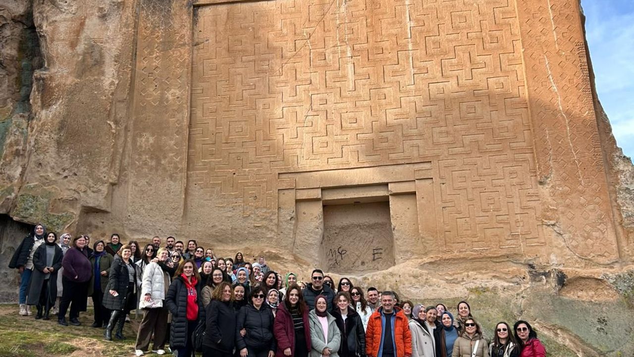 Pazar günü ise Kadın Kolları tarafından düzenlenen Frig Vadisi kültür ve doğa turu, katılımcılara unutulmaz bir deneyim sundu. Kadın sağlık ve sosyal hizmet çalışanları tarihle doğanın buluştuğu Ayazini’nin mistik atmosferinde, Emre Gölü’nün kartpostalları aratmayan manzarasında ve Frig Vadisi’nin binlerce yıllık medeniyet izleri arasında huzur ve keşif dolu saatler geçirdi. Yazılıkaya’da yükselen görkemli kaya anıtları, Friglerin kadim izlerini yakından görme fırsatı sundu. Ayrıca Seyit Battal Gazi Türbesi’nin manevi huzur veren ortamı, katılımcıları derin bir tarih, inanç ve değerler yolculuğuna çıkardı.