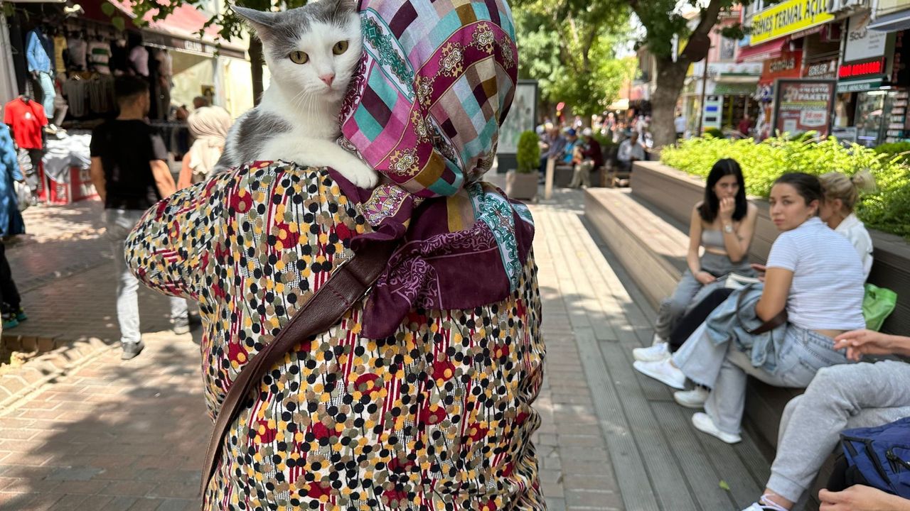Eskişehir’de yaşayan bir kadın, 3 yıl önce yavruyken sahiplendiği ve Boncuk ismini verdiği kedisi ile kenti dolaşıyor. Sahibi fatura yatırmaktan alışverişe kadar dışarıda olan bütün işlerine Boncuk’u da götürüyor. 3 yaşındaki kedisini omzunu almadan dışarıya adeta adım atmayan kadın, çevredeki vatandaşların yoğun ilgisine maruz kalıyor.