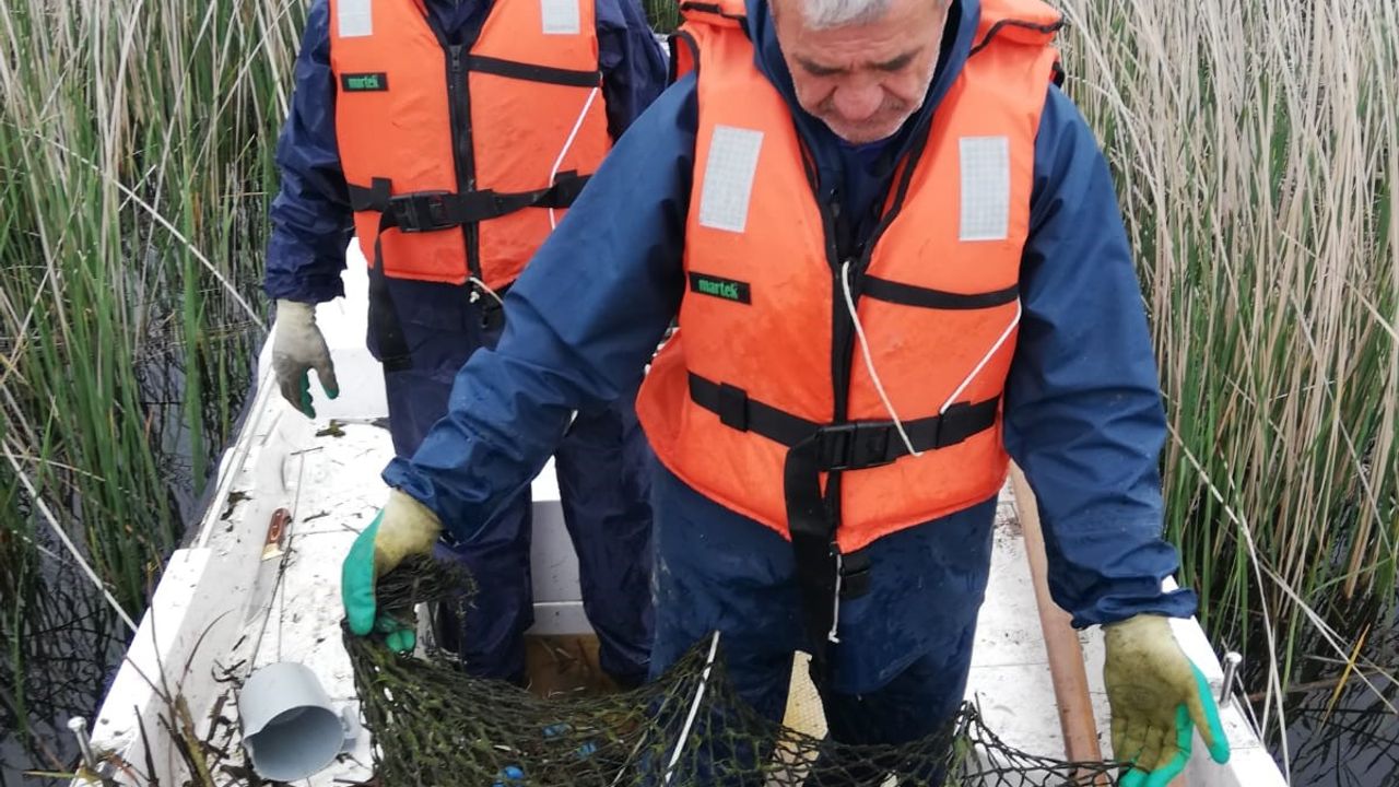 Suda atıl vaziyette bulunan hayalet av araçlarına çok sayıda ölü balık, kuş ve kaplumbağa takıldığı görüldü. Ayrıca çalışma esnasında pinterlere girmiş 15 adet canlı sazan balığı suya iade edildi.