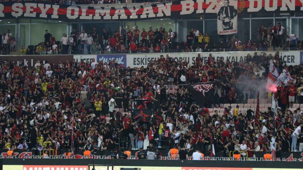 Eskişehir Yeni Atatürk Stadyumu'nun tepesinden taraftarın oturduğu bölgeye doğru kıvılcımlar saçan volkan havai fişekler yakıldı. Bu esnada taraftarın yaşadığı zor anlar objektiflere yansıdı. Tribünlerdeki vatandaşlar yaşanan olaya ıslıklarla tepki gösterdi.