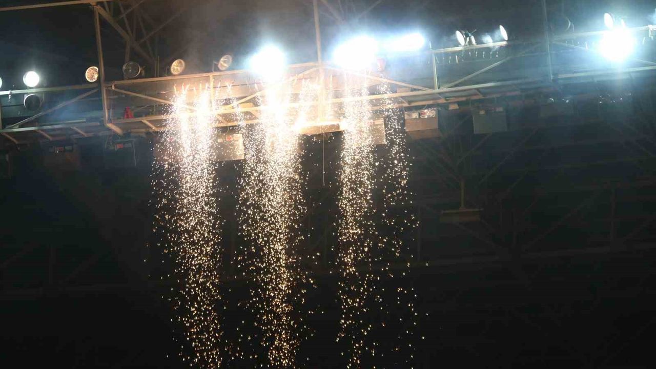 Eskişehirspor’un ’Şampiyonluk Gecesi’ kutlamaları büyük coşkuyla sürüyor. Ünlü sanatçılar sahneye çıkmaya devam ederken, geçtiğimiz dakikalarda Hande Ünsal’ın konseri sırasında ilginç bir olay yaşandı. Eskişehir Yeni Atatürk Stadyumu’nun tepesinden taraftarın oturduğu bölgeye doğru kıvılcımlar saçan volkan havai fişekler yakıldı. Bu esnada taraftarın yaşadığı zor anlar objektiflere yansıdı. Tribünlerdeki vatandaşlar yaşanan olaya ıslıklarla tepki gösterdi.
