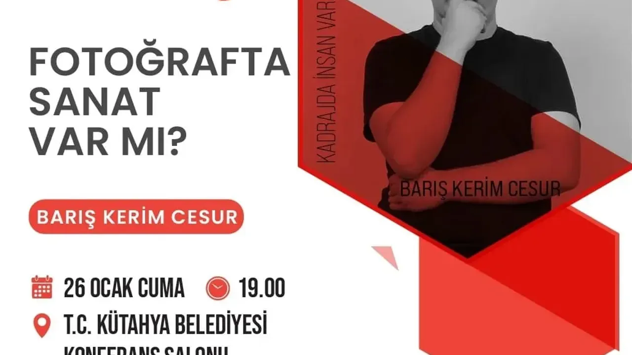 Fotoğraf Sanatçısı Oyuncu, Barış Kerim Cesur Kütahya Belediyesinin Daveti Üzerine 25-28 Ocak Tarihleri Arasında Kütahya da Olacak Çeşitli Fotoğraf Etkinlikleriyle Fotoğraf ve Tiyatro Sever Vatandaşlarla Buluşacak Olan Sanatçı, İlk Olarak 26 Ocak Cuma Günü Belediye Binası Konferans Salonunda Söyleşi ve Fotoğraf Gösterisi Gerçekleştirecek.