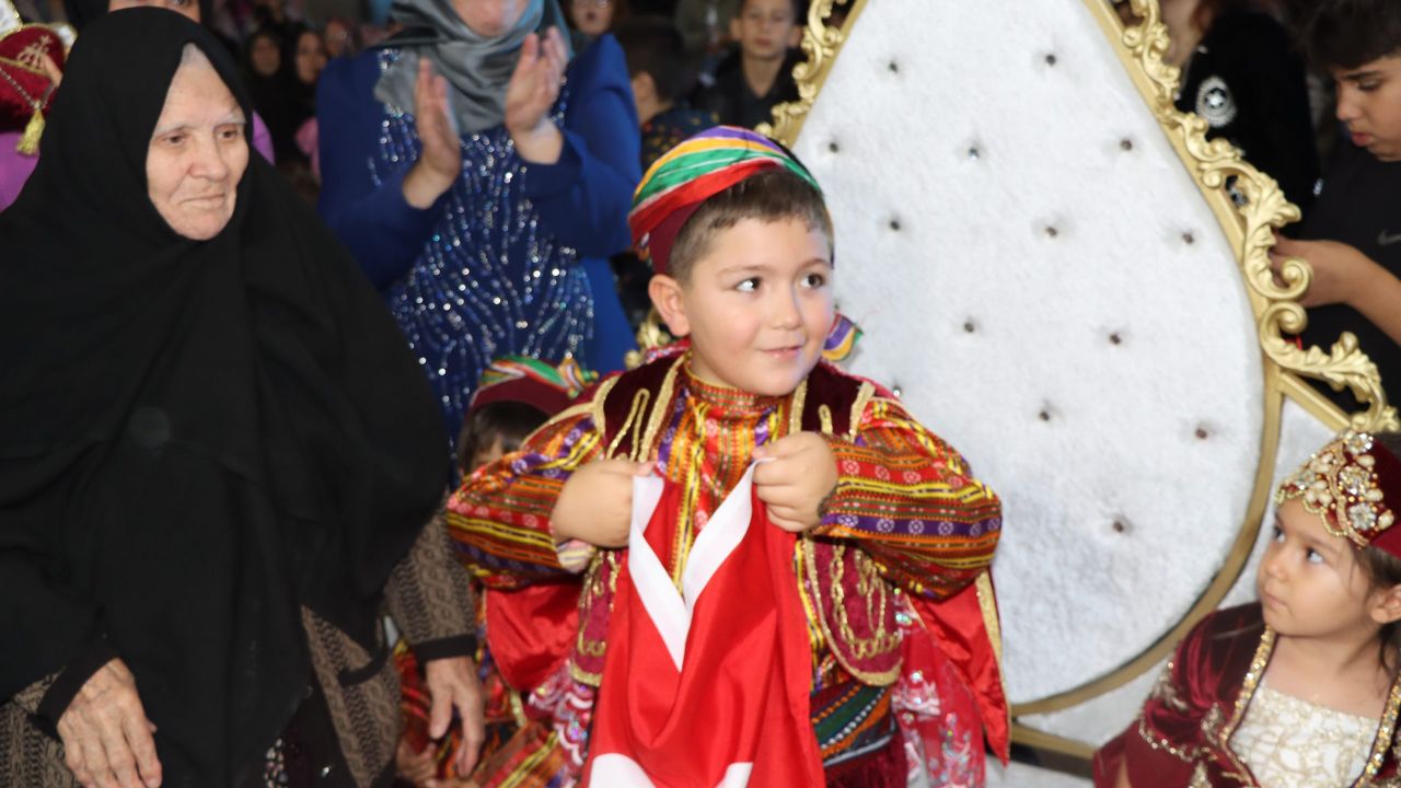 Eskişehir Seyitgazi Kırka mahallesinde yapılan sünnet düğününde şehit annesi, torununa, asker kınasında oğlunun emaneti olan Türk bayrağını verdi.
