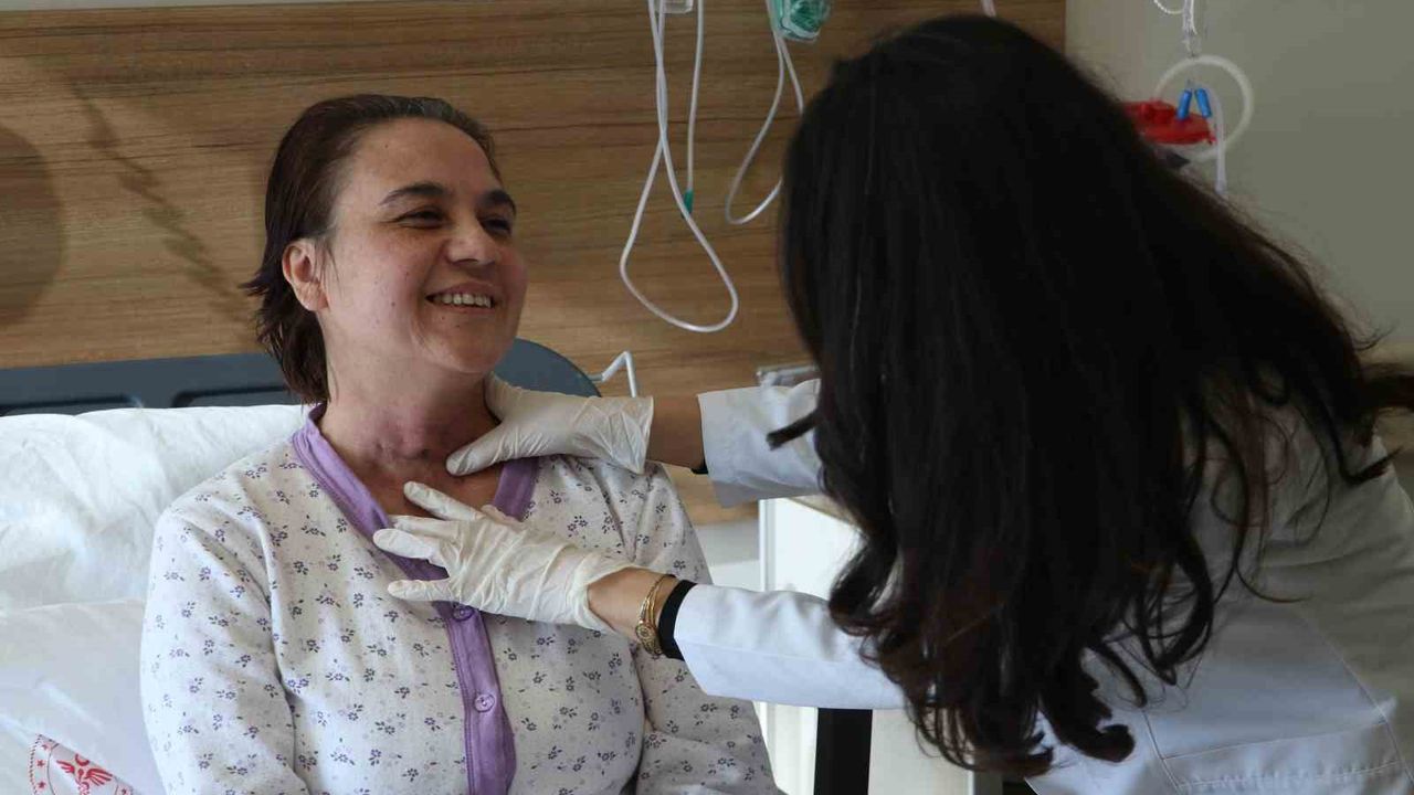 Eskişehir’de yaşamını sürdüren Nuran Yılmaz, tiroit bezi rahatsızlığı nedeniyle Eskişehir Şehir Hastanesi’ne müracaat etti. Yapılan guatr ameliyatının ardından gelişen boyun enfeksiyonu sonucunda Yılmaz’ın soluk borusunda nefes alıp vermesini zorlaştıran bir delik oluştu. Bu süreçte konuşma kabiliyetini kaybeden 2 kız annesi, yoğun bakımda günlerce makineye bağlı kaldı. Eskişehir Şehir Hastanesi Palyatif Bakım Merkezi ve Kulak Burun Boğaz (KBB) servisinde gördüğü başarılı tedaviden 2,5 ay sonra tekrar konuşabilmeye başlayan Nuran Yılmaz, geçirdiği zor günlerin ardından sesine geri kavuştu. Artık kendini çok iyi hissettiğini dile getiren Yılmaz, tedavi sürecinde emeği geçen ekibe teşekkürlerini iletti.
