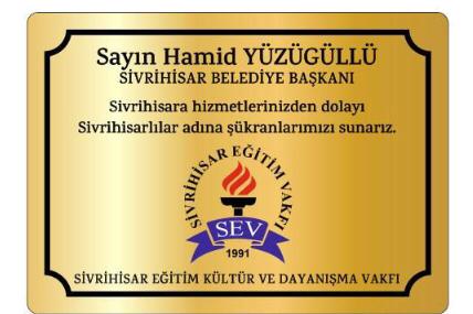 Törende SEV Başkanı Bekir KALIR, Belediye Başkanı Yüzügüllü’nün ilçeye yaptığı katkıları ifade ederek, “marifet iltifata tabidir, İlçemiz Sn. Başkanın döneminde tek boyutlu büyümedi. Özelikle turizm, kültür ve ekonomi alanlarında ilçemiz gelişmeler katetti” dedi. Bundan dolayıdır ki SEV Yönetim Kurulu olarak bu plaketi, Sn. Başkan’a takdim etmeye karar verdik ifadelerini kullandı.