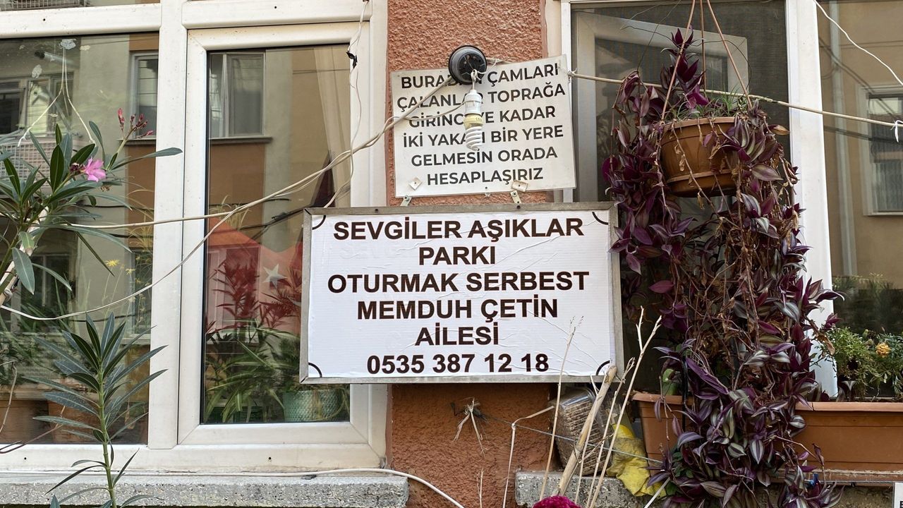 Oturmanın serbest olduğunun belirtildiği parkın kurulduğu yerin duvarına yazılan, "Buradan çamları çalanlar toprağa girinceye kadar iki yakanız bir yere gelmesin, orada hesaplaşırız" yazısı da göze çarptı.