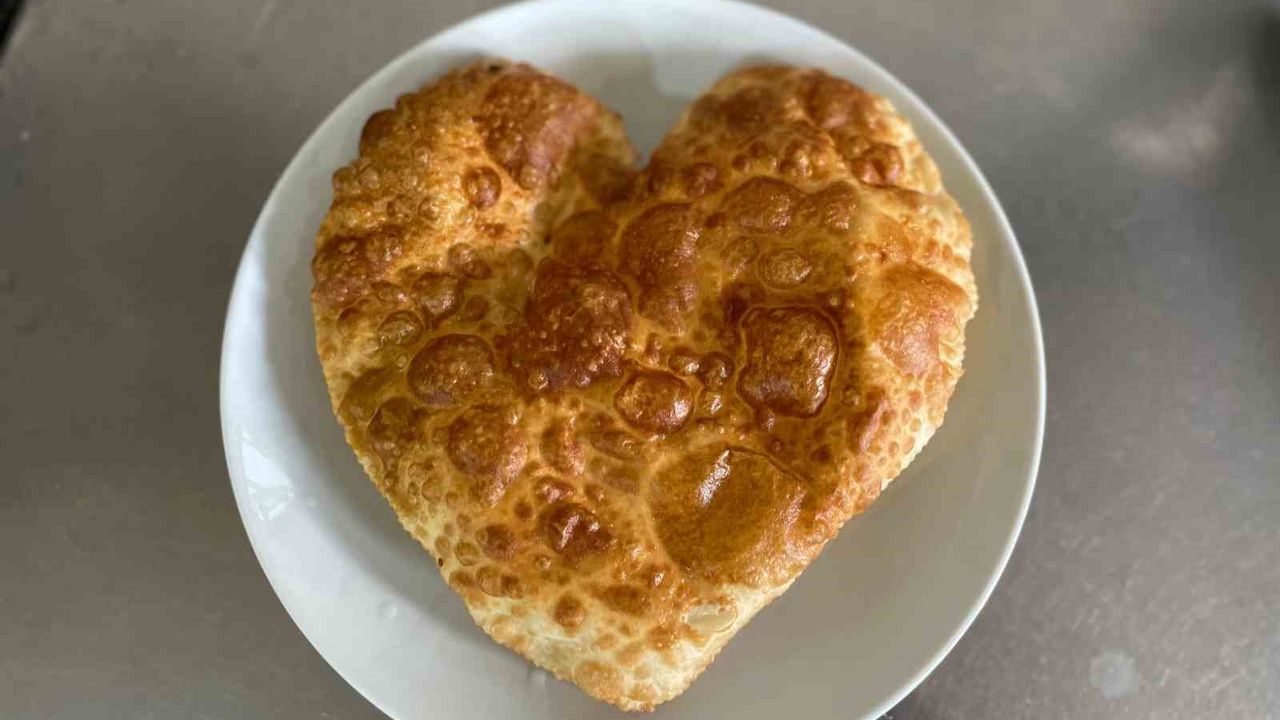 Sevgililer Günü’nde aşkı simgeleyen ürünler dükkânlarda ve raflarda yer alırken, çeşitli tatlar da bugüne özel olarak şekillendi. Eskişehir’in özgün bir lezzeti olan ve genellikle yarım ay şeklinde hazırlanarak ikram edilen çibörek, bir işletme tarafından 14 Şubat Sevgililer Günü’ne özel kalp şeklinde pişirildi.