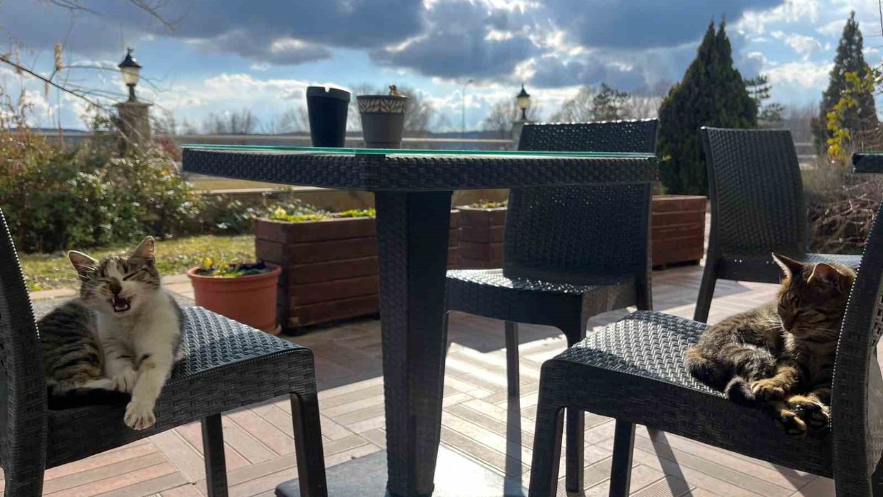 Eskişehir’de günlerdir devam eden güneşli ve sıcak hava etkisini sürdürmeye devam ediyor. Bir kurum bahçesindeki kediler de sıcak havanın keyfini güneşlenerek çıkardı. Kediler bahçedeki sandalyelerde güneşlenirken, ortaya sevimli görüntüler çıktı. Çevredeki vatandaşlar da bu anları cep telefonlarıyla kaydetti.