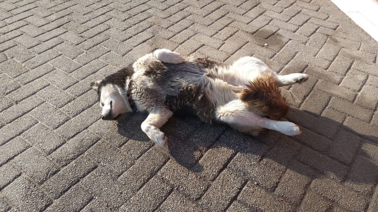 Yenikent mahallesindeki kaldırımda sere serpe uzanan sokak köpeği, hareketleri ile dikkat çekti. Soğuk havaya rağmen ara ara yüzünü gösteren güneşi fırsat bilip uzanan köpek, vatandaşları gülümsetti. Sırtını sıcak kaldırıma, karın bölgesine güneş ışıklarına tutup ısınmaya çalışan sevimli köpek güzel görüntüler oluşturdu.