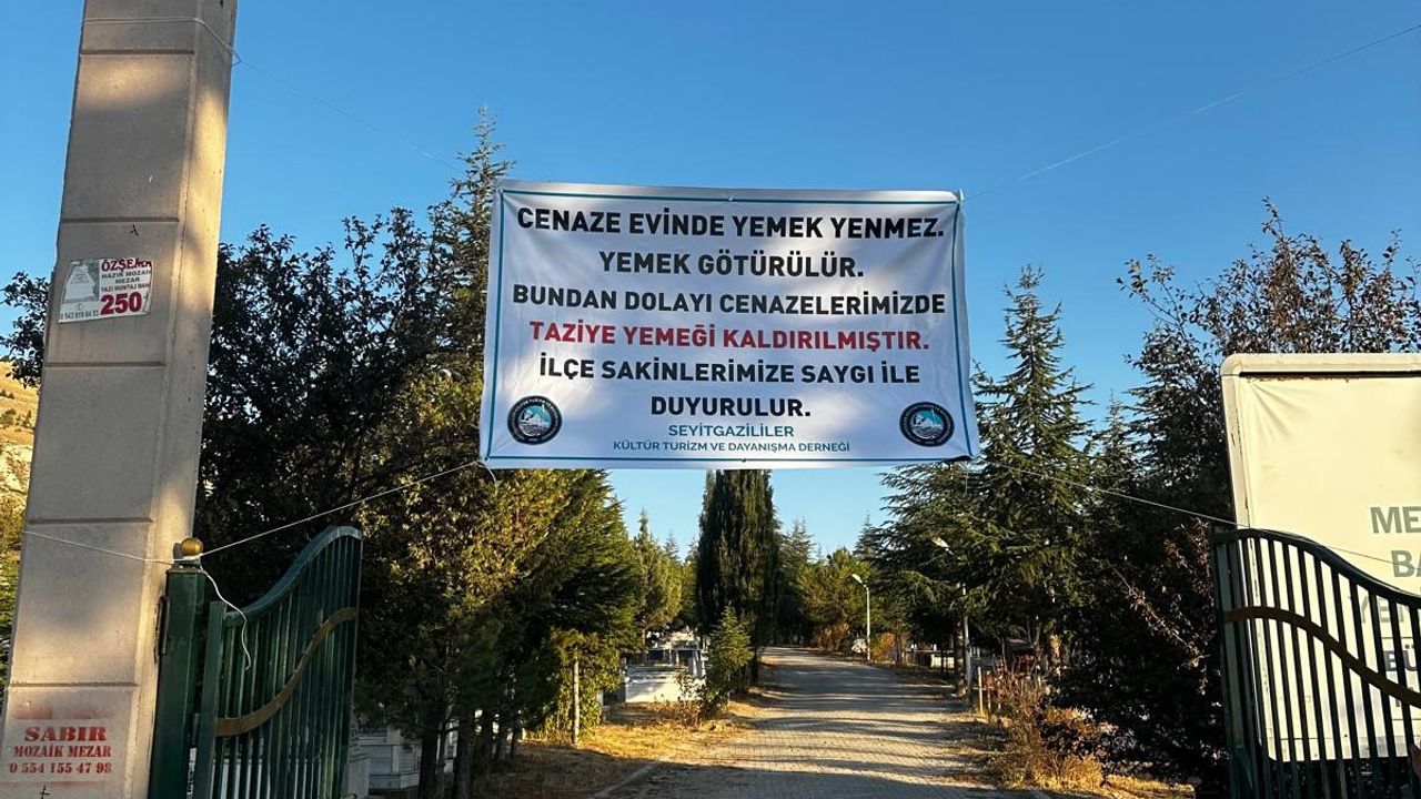 Bu doğrultuda; cenaze sahibi aileden yemek ikramı beklenmemesi, aksine onların yükünü hafifletmek için destek olunması uygun görülmektedir. Bu hassasiyeti gözeterek, tüm Seyitgazili hemşehrilerimizin anlayışına ve desteğine sığınıyoruz" ifadeleri yer aldı.