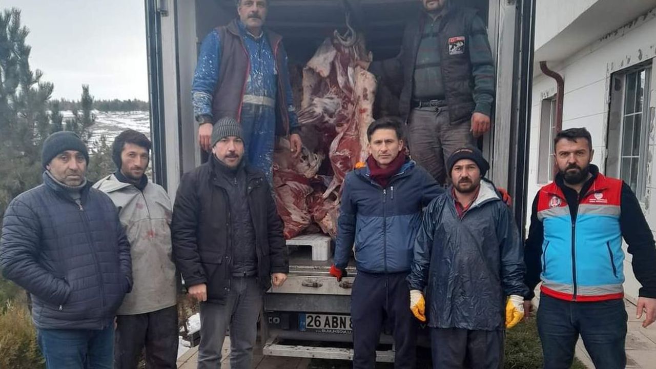 Seyitgazi Ziraat Odası öncülüğünde Çiftçi ve hayvan üreticileri aralarında topladığı Küçükbaş ve büyükbaş hayvanların kesimini yaparak deprem bölgesine gönderdiler