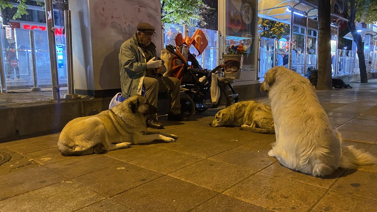 Eskişehir'de kendisine ek gelir sağlamak için seyyar satıcılık yapan Hayri Öz, elde ettiği kazancın bir bölümü ile sokak hayvanlarına mama alarak kentin farklı noktalarında besleme yapıyor.