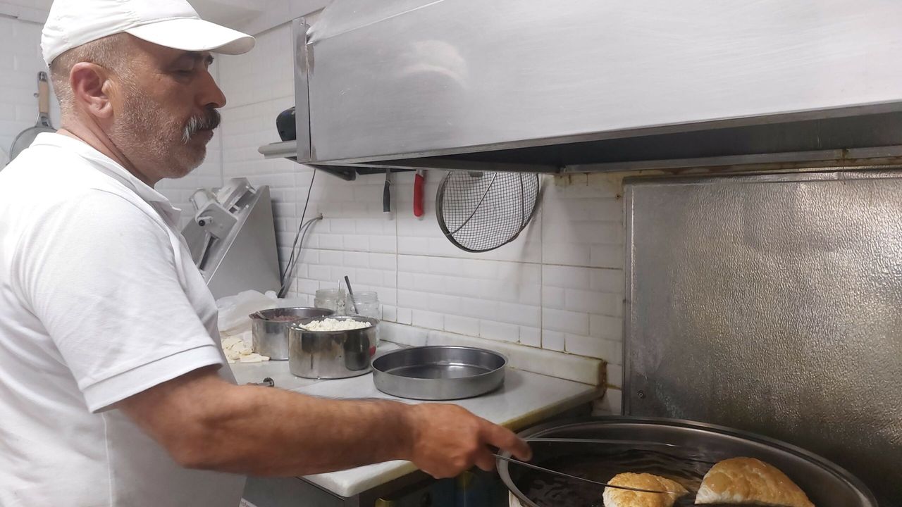 Eskişehir'de yaz sıcaklarına rağmen çibörek üretimine devam eden Necati Aslan, sıcak havalarda çalışmanın zor olduğunu, ancak dışarıdan gelen misafirlerin ilgisinin kendilerine moral olduğunu söylüyor.
