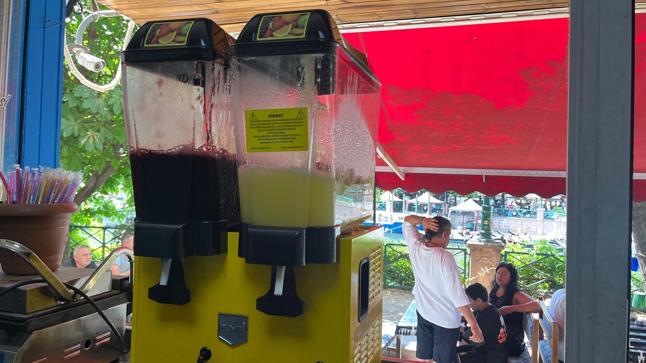 Sıcak havalarda satışlarıyla ilgili konuşan Hulusi Günaydın, “Havalar gerçekten çok sıcak, çalışırken zaman zaman zorlanabiliyoruz. Müşterilerimiz genellikle tatbiki soğuk su isteği çok oluyor. Suyun yanı sıra limonata ve karadut suyu da oldukça tercih edilen ürünlerimiz. Limonatanın bardağı 50 liradan, madensuyu ve limon karışımı ise 30 liradan satıyoruz” dedi.