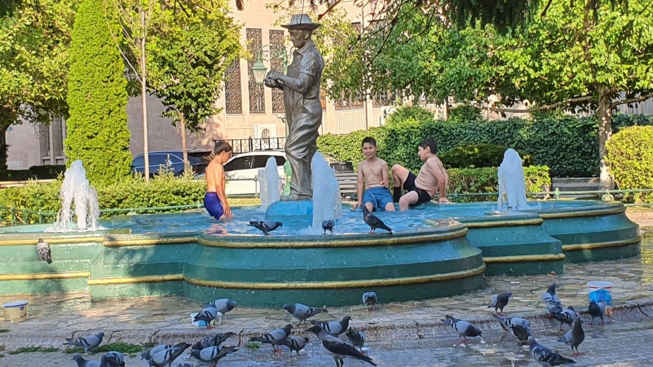 Eskişehir'de sıcak havadan bunalan çocuklar süs havuzuna girerek tehlikeli olmasına rağmen süs havuzuna girerek serinlemeye çalıştı.