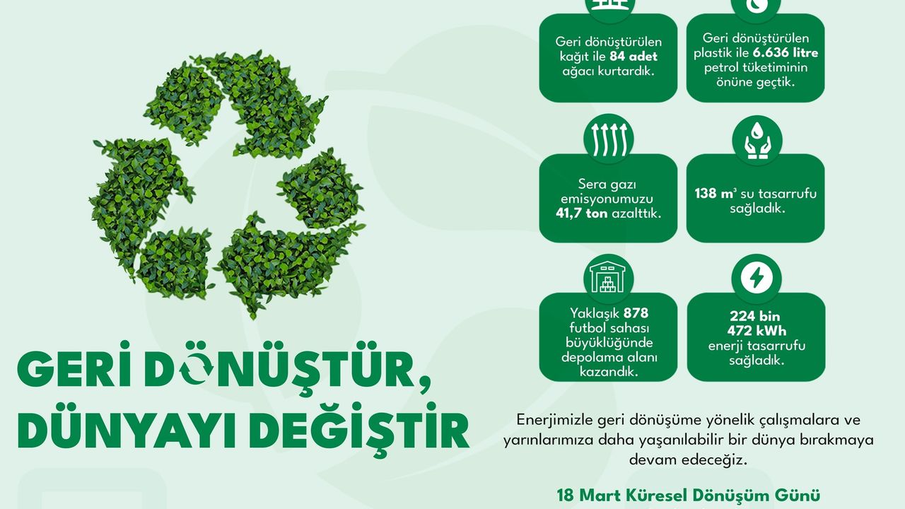“Atık yönetim uygulamalarımız ile 84 ağacı kesilmekten kurtarırken sera gazı emisyonumuzu 41,7 ton azalttık. Ayrıca 6 bin 636 litre petrol, 560 ton ham madde, 138 metreküp su ve 224 bin 472 kWh enerji tasarrufu sağladık.”