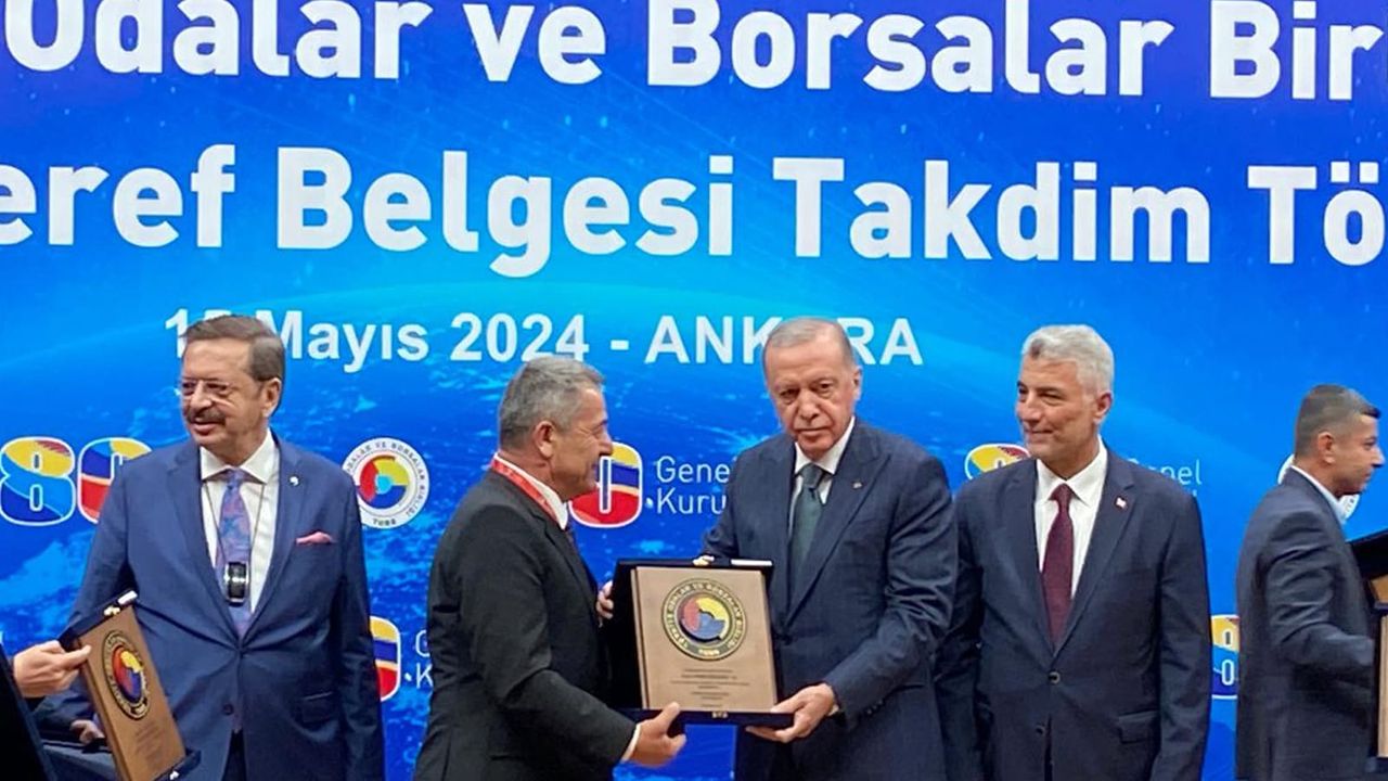 Türkiye Odalar ve Borsalar Birliği 80. Genel Kurul Hizmet Şeref Belgesi Takdimi, Cumhurbaşkanı Recep Tayyip Erdoğan’ın katılımıyla gerçekleştirildi.