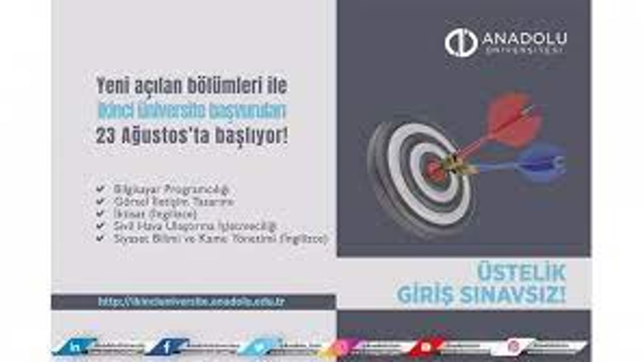 Anadolu Üniversitesinin 2002 yılında hayata geçirdiği sınavsız İkinci Üniversite, hayalleri bir diplomaya sığmayanlar için ön lisans ve lisans programlarına sınavsız başvurarak kayıt olma imkânı tanıyor.