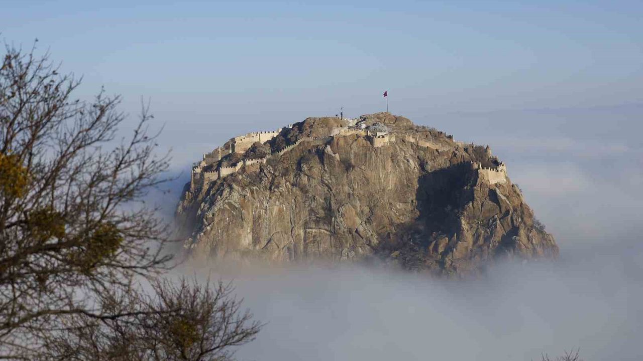 Afyonkarahisar’da yoğun sis Karahisar Kalesi’nde kartpostallık görüntüler oluşturdu.